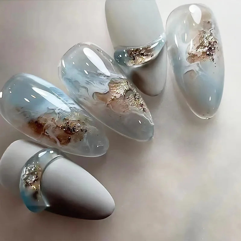 24Pcs Pink Gradient Almond Fake Nails Press on With Pearl Rhinestone Design False Nails Bow Flower Pattern Full Cover Nails Tips