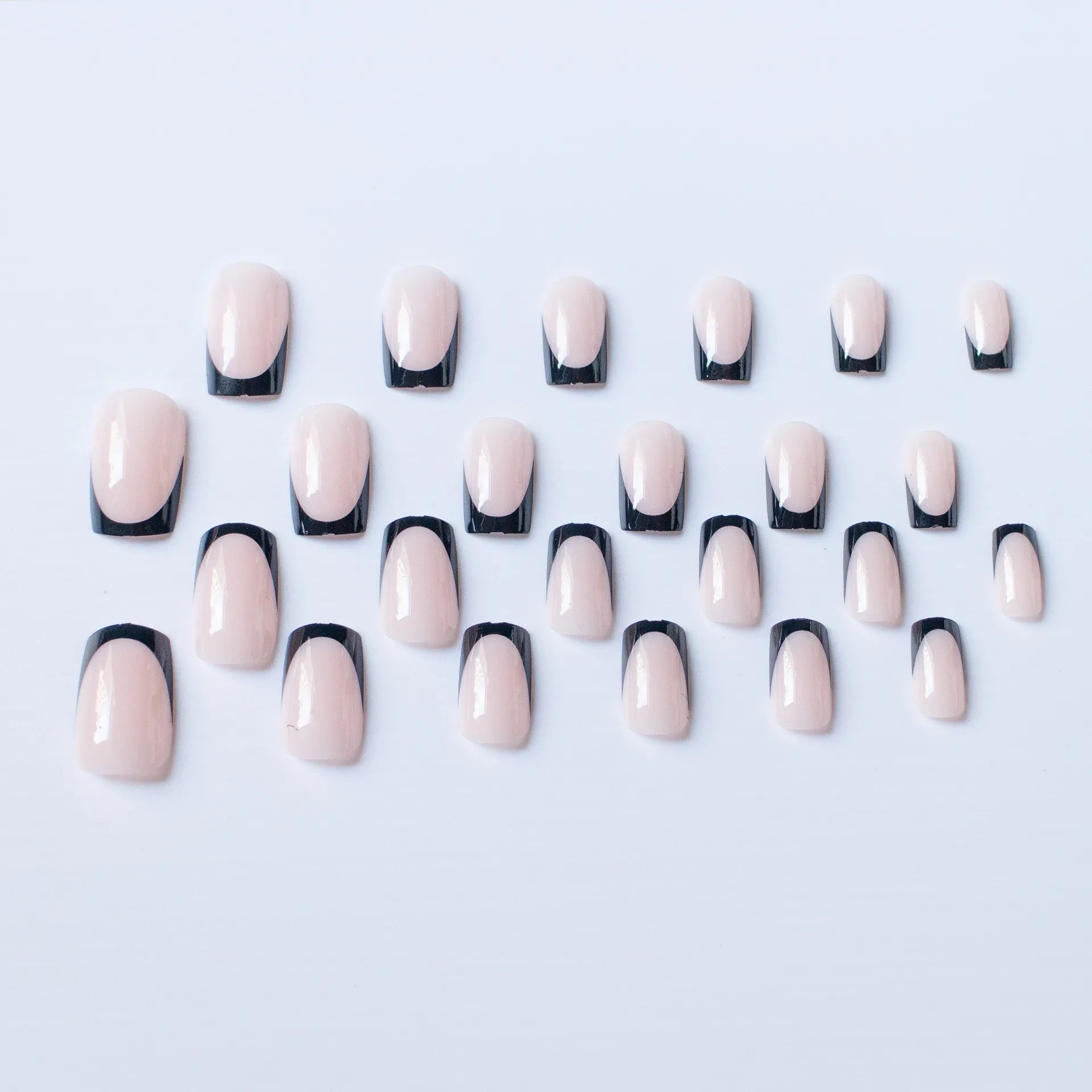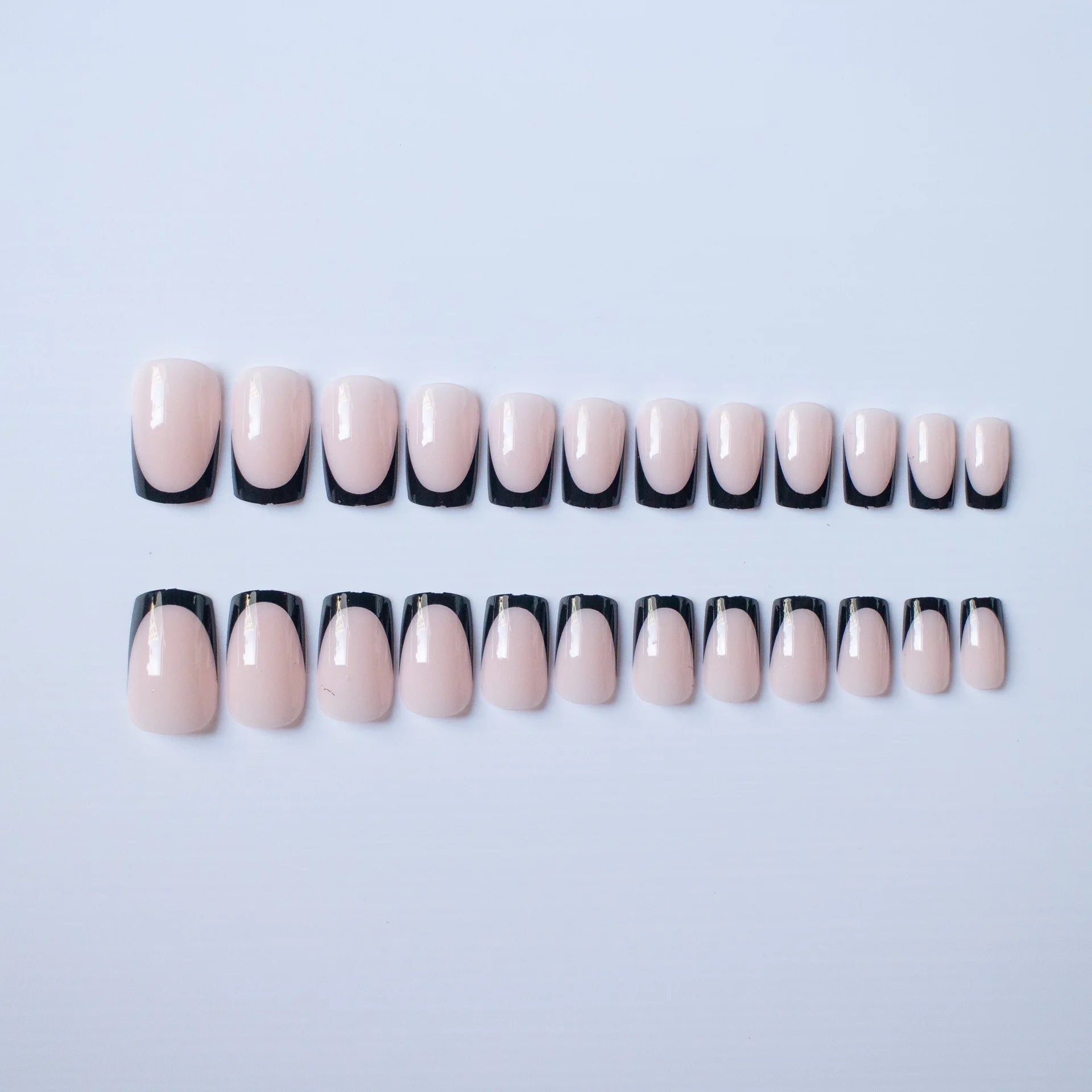 Spicy Girls Black French Fake Nails 24Pcs Short Square Press On Nails Y2K Bowknot/Dot Printed Full Cover Stick-on Nails Patches