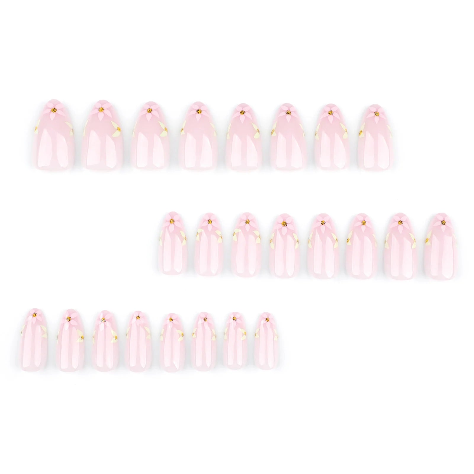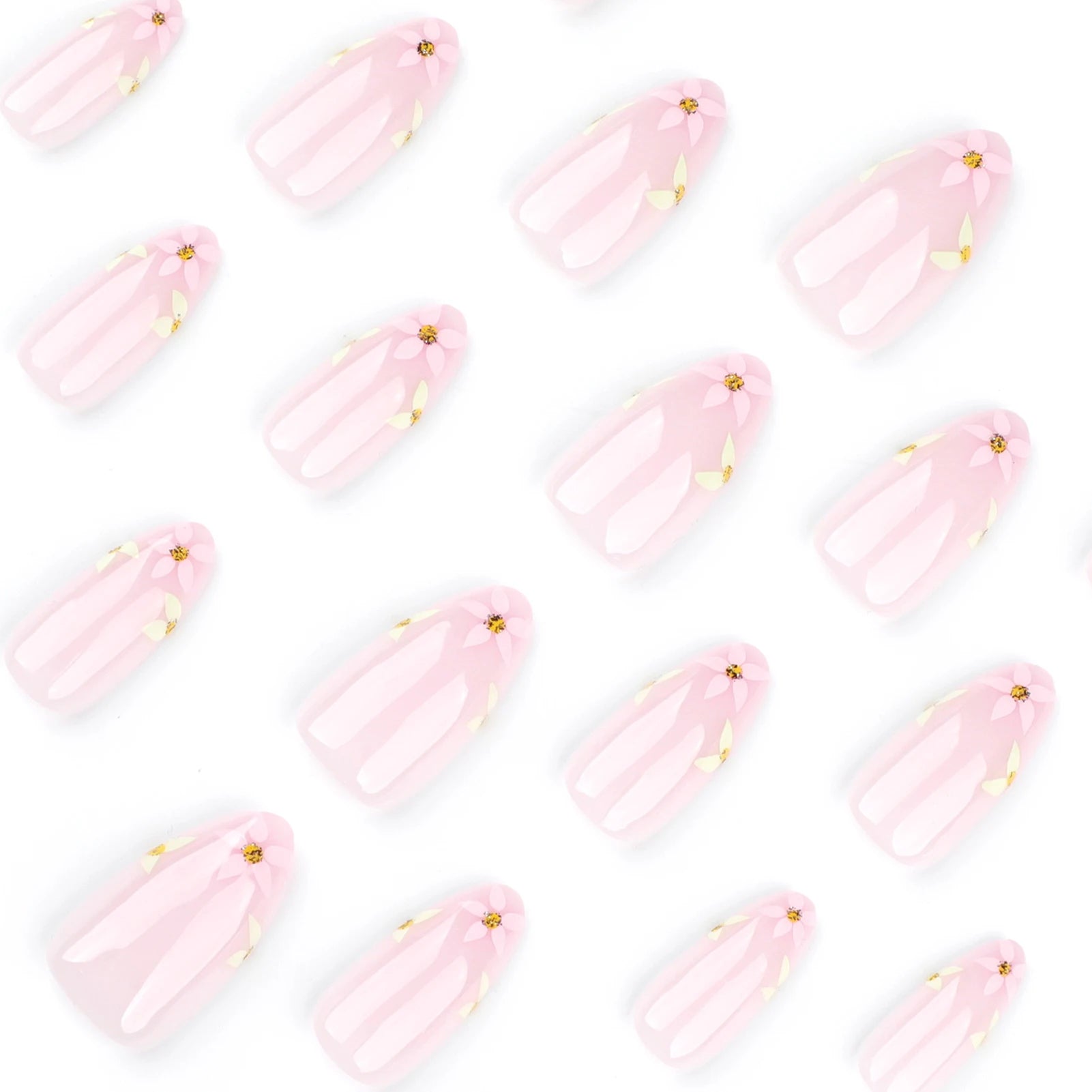Nude Pink Fake Nails 24Pcs Almond Press On Nails Fairy Flower Printed Spring/Summer Charm Manicure Wearable False Nail for Woman