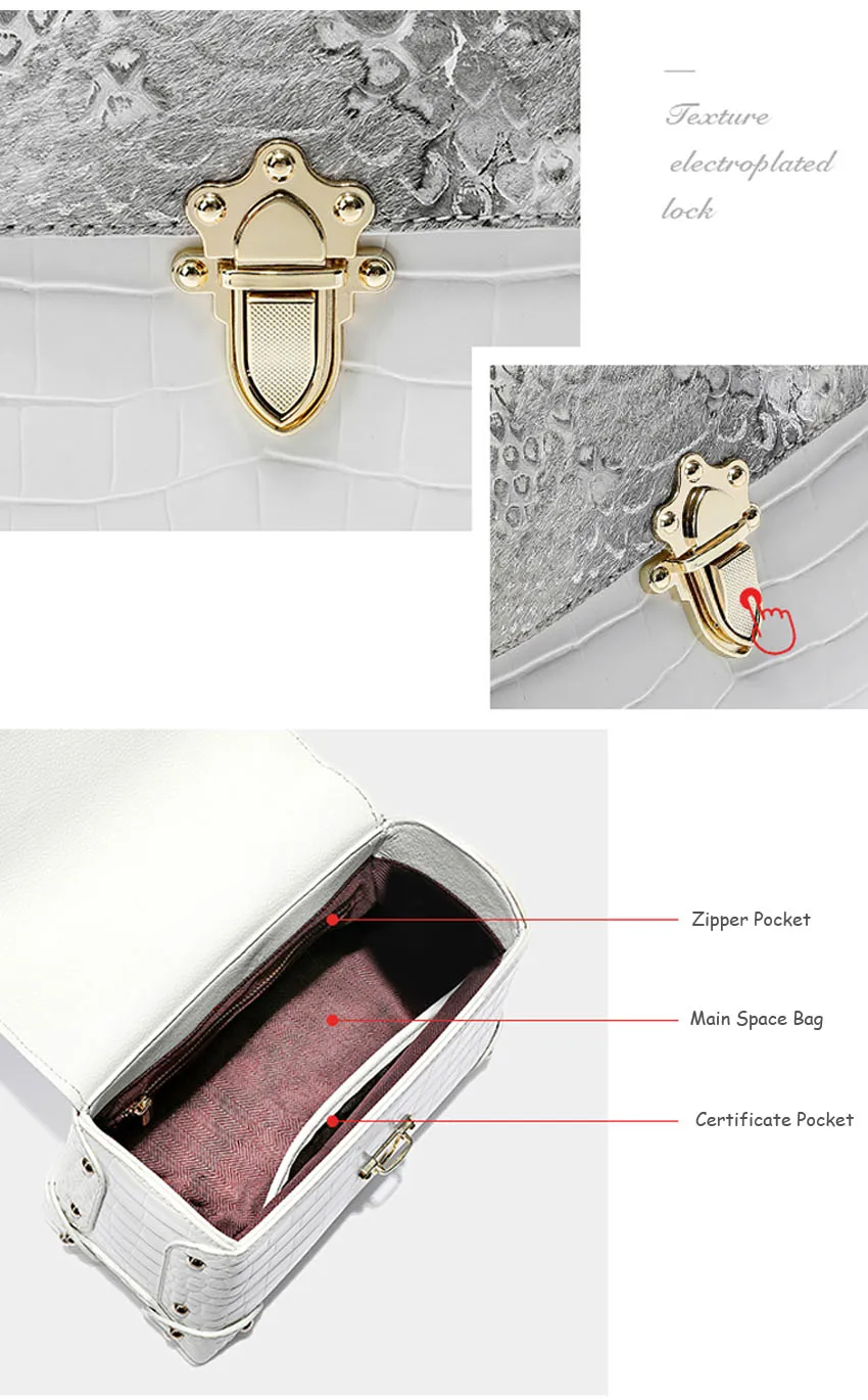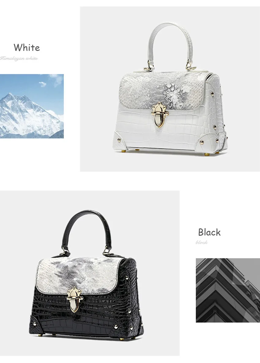 Women Genuine Leather Bag Crocodile skin Women's handbag luxury designer handbag Women Leather Handbag Brand sac de luxe femme Black