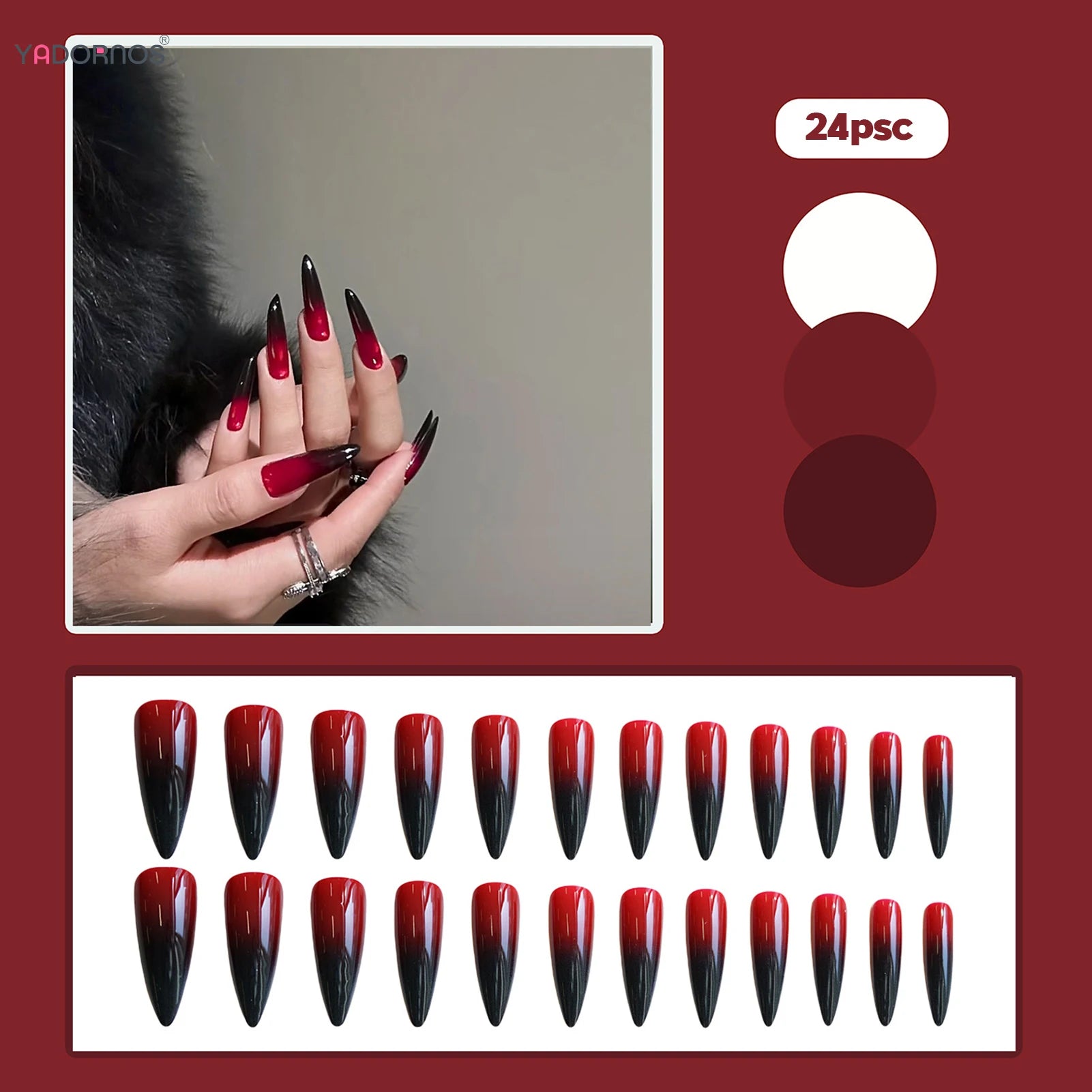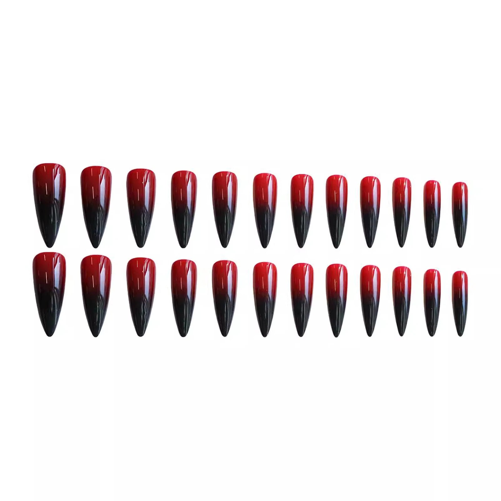 24Pcs Long Stiletto Fake Nails Gradient Red/Black Press On Nails Spicy Girls Charm Manicure Full Cover Stick-on Nail Extension