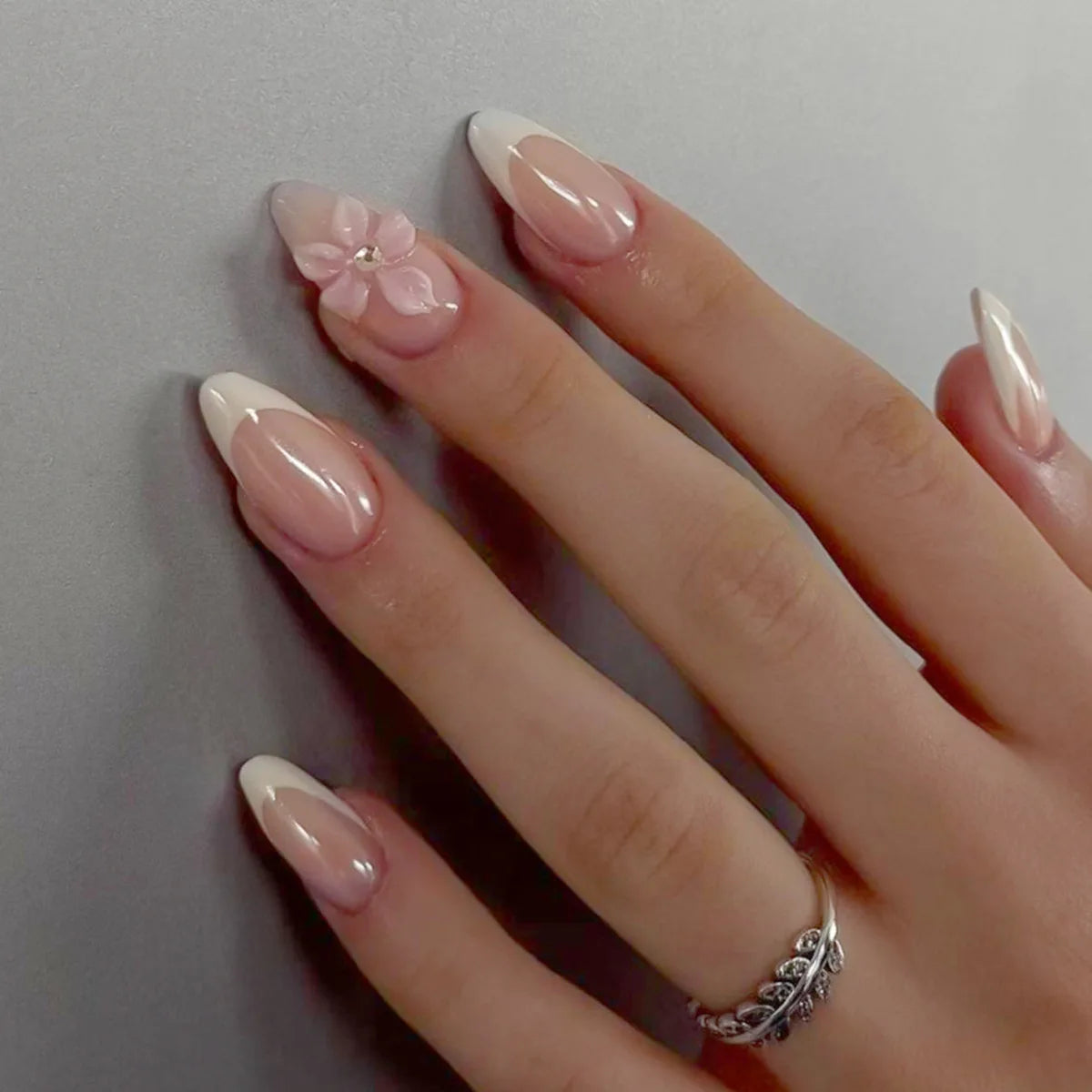 24Pcs Mid-length Almond False Nails with 3D Bow Red Smudge Design Press on Nails Detachable Finished Full Cover Fake Nails Tips