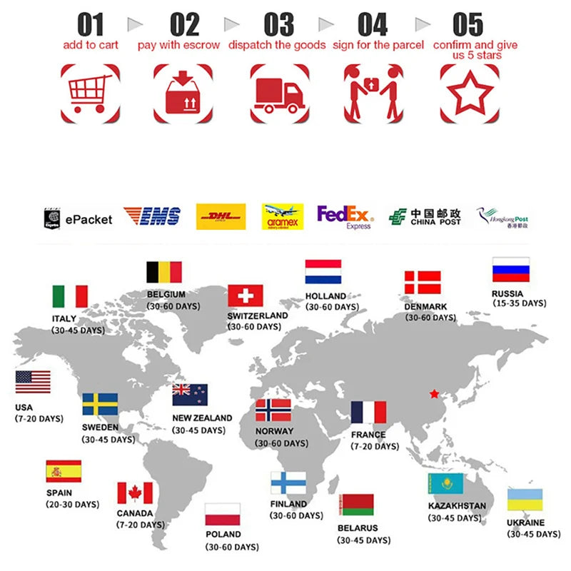 Standard Shipping: AliExpress Standard Shipping 15-25 days, some counties may need more time.